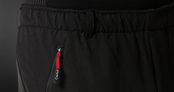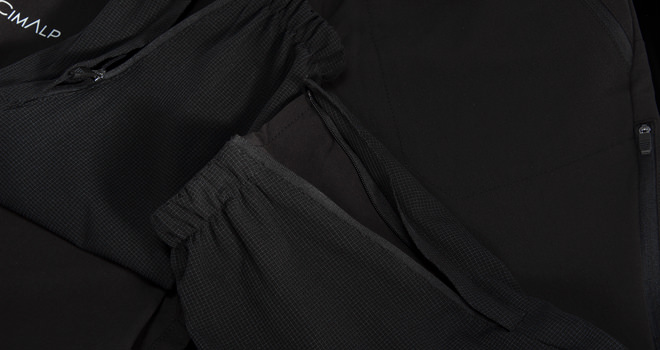 • Bas-de-jambes élastiqués et zippés, avec bande de silicone intérieure pour une adaptabilité optimale