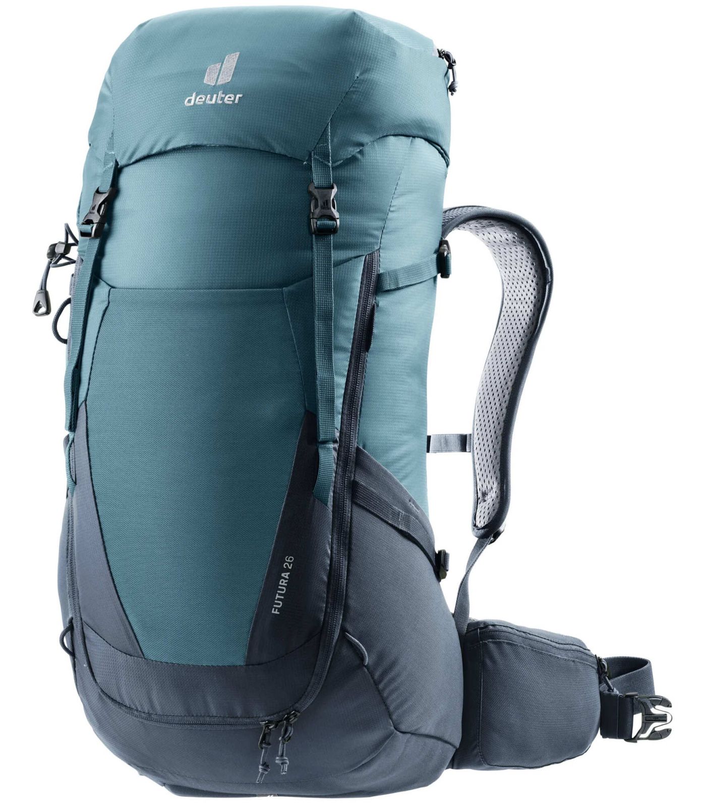Avec son accès frontal zippé, ses multiples compartiments (dont un pour objets de valeur, un pour vêtements mouillés, et un dans le rabat supérieur), le Futura 26 est un modèle pensé pour l’organisation et l’accessibilité. Il dispose également de poches latérales élastiques, de sangles de compression, d’un porte-bâtons, de boucles pour casque, et d’une housse de pluie amovible pour affronter toutes les conditions météorologiques.